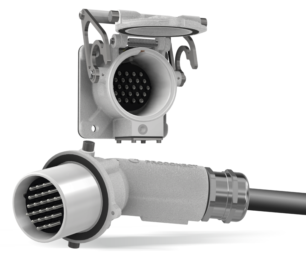 24 poles connector used for shore power supply of cruise vessels 24V & 110V control circuits following IEC 80005-1 Annex C.