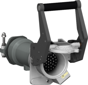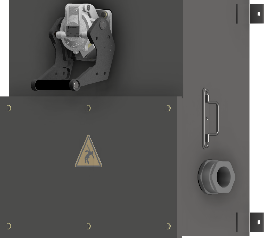 Active part to be placed wall-mounted or on an electrical cabinet. Cam push/pull system to maintain IP67 when closed or help and lock the connection of a plug.