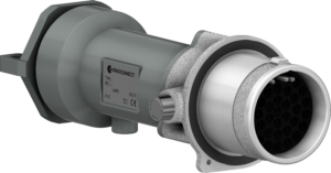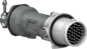 Mobile connector to be cabled and connected in a socket or a cable coupler. The plug cap options are needed to ensure IP67 once disconnected.