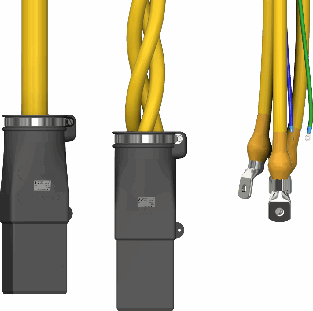For example, connectors can be supplied with a certain length of cable or directly on a reel, one end being the plug and the other beign cable lugs for junction.