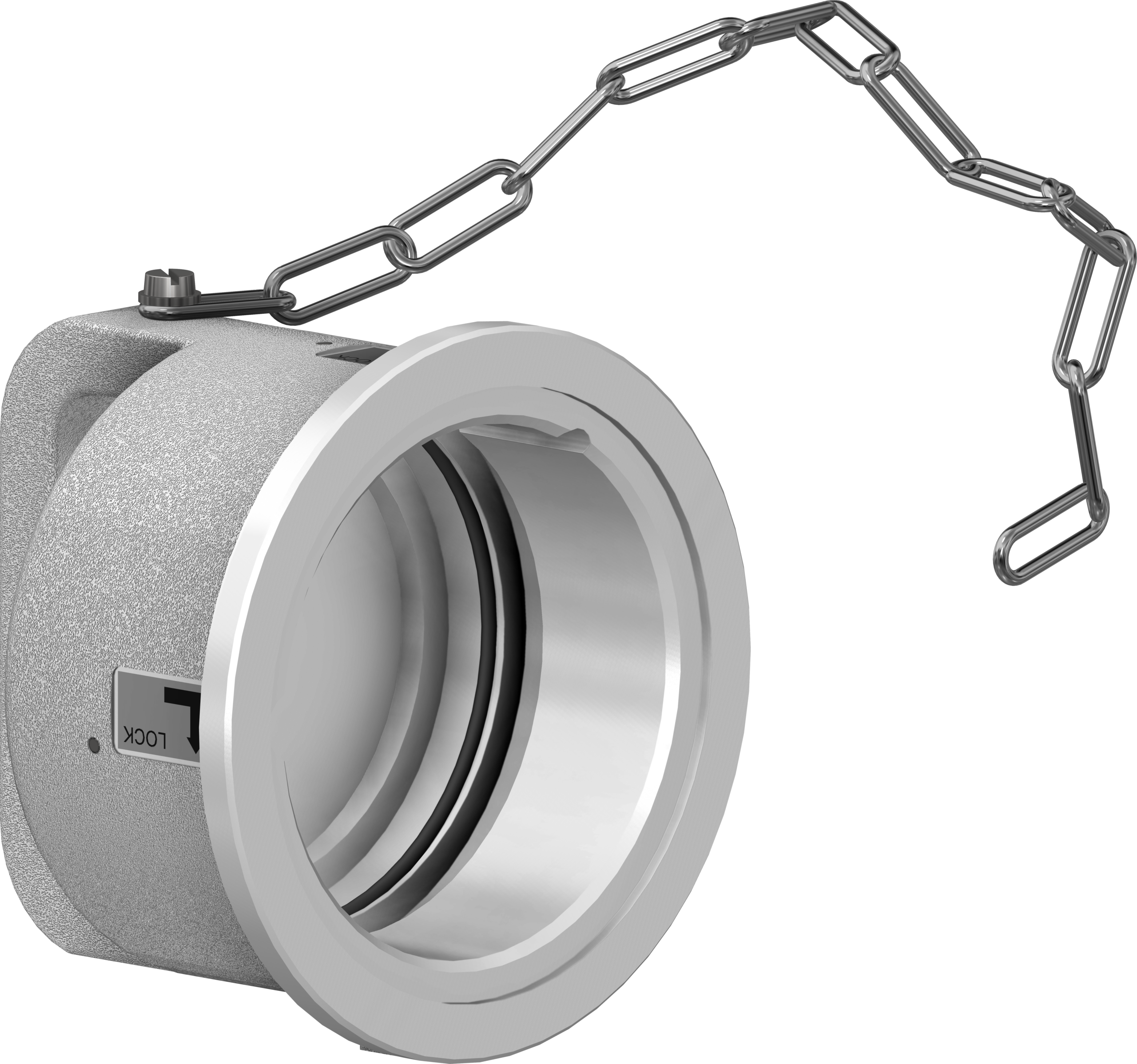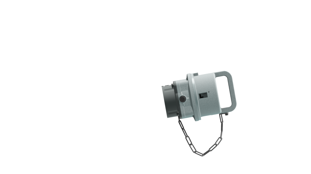 ASG7 aluminium plug cap linked to the front of the plug by a chain to ensure IP67 rating of the plug once disconnected.