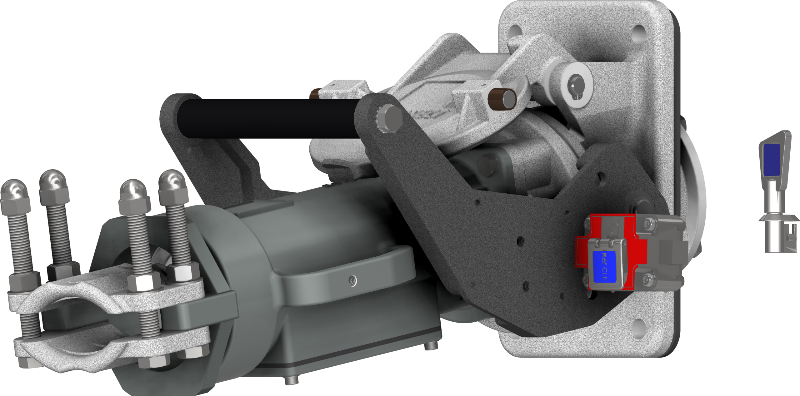 Captive key system both on the plug and the socket to authorize electrification of the system once connected and the key engaged.