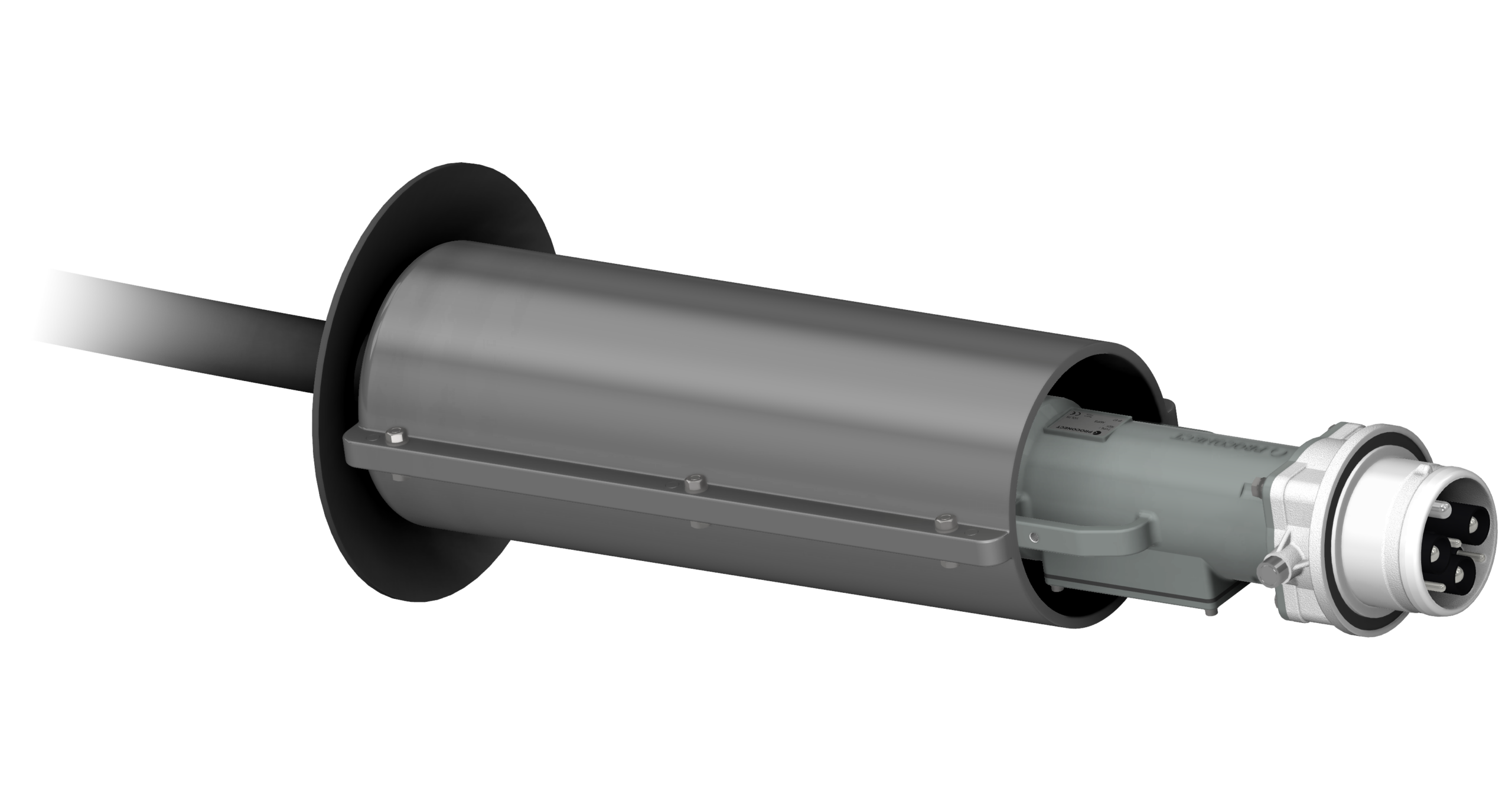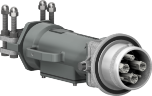Mobile connector to be cabled and connected in a socket or a cable coupler. The plug cap options are needed to ensure IP67 once disconnected.