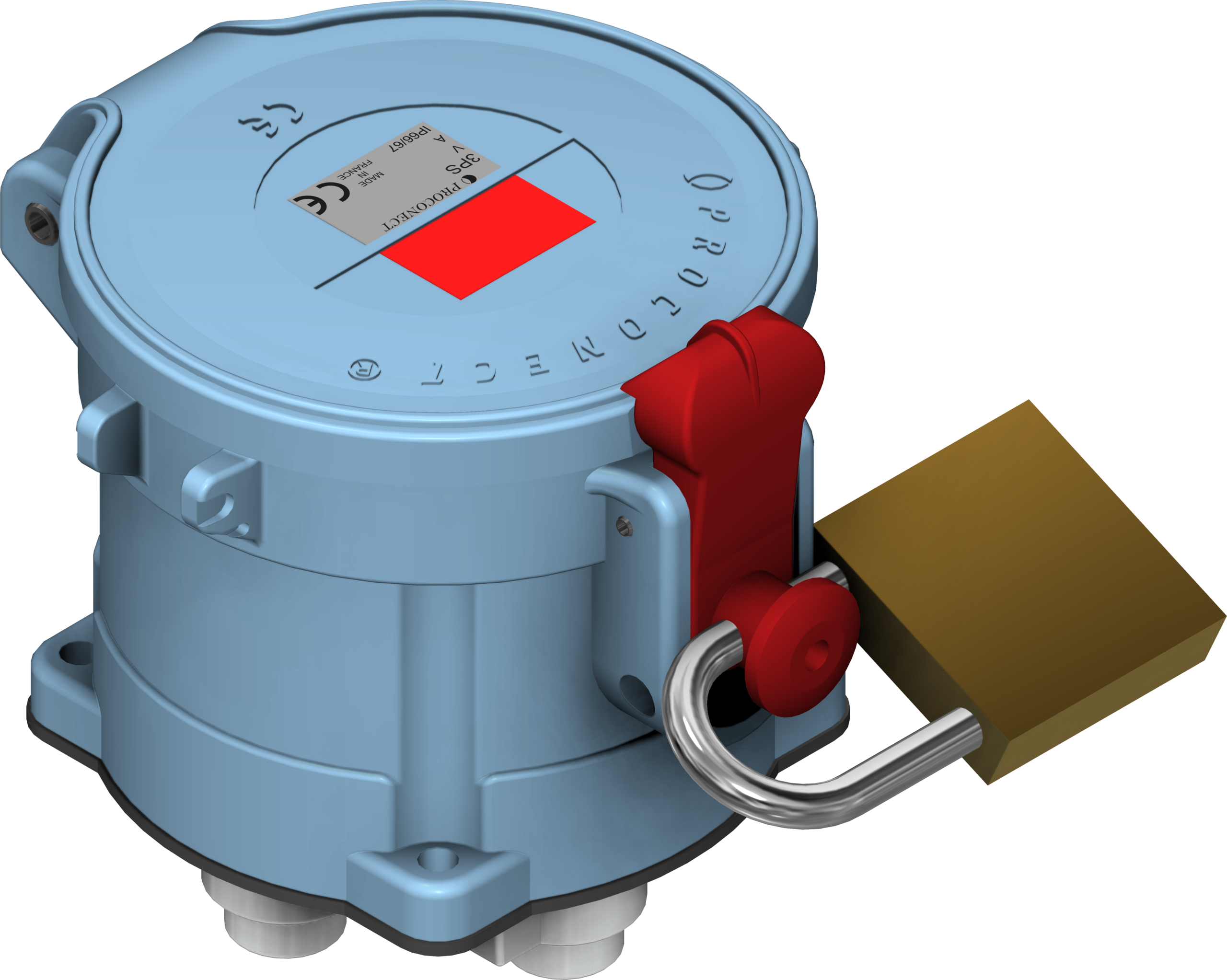 Special latch drilled to allow a padlock (6 mm max.) to secure the socket in a closed or connected position.